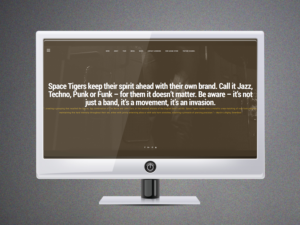 Space Tigers Space Tigers is a Berlin based band gathered around Greg’s and Vanja’s compositions. “Real Sofa Techno Jazz Surfers” keep their spirit ahead with their own brand. Client: Space Tigers Website: spacetigers.net Services: Creative Direction, Design, Illustration, Visual Identity, Marketing material, Music teasers, Music Video, Website I created series of for Space Tigers. Visit website Slim Fit, Fitted, Long, Classic, Hoodie? Just be prepared for their next concert. Visit Shop Space Tigers have their own shop on Redbubble with lots of cool stuff, check it out! Buy Tigers stuff on Redbubble Share some LoOoOove for Space Tigers